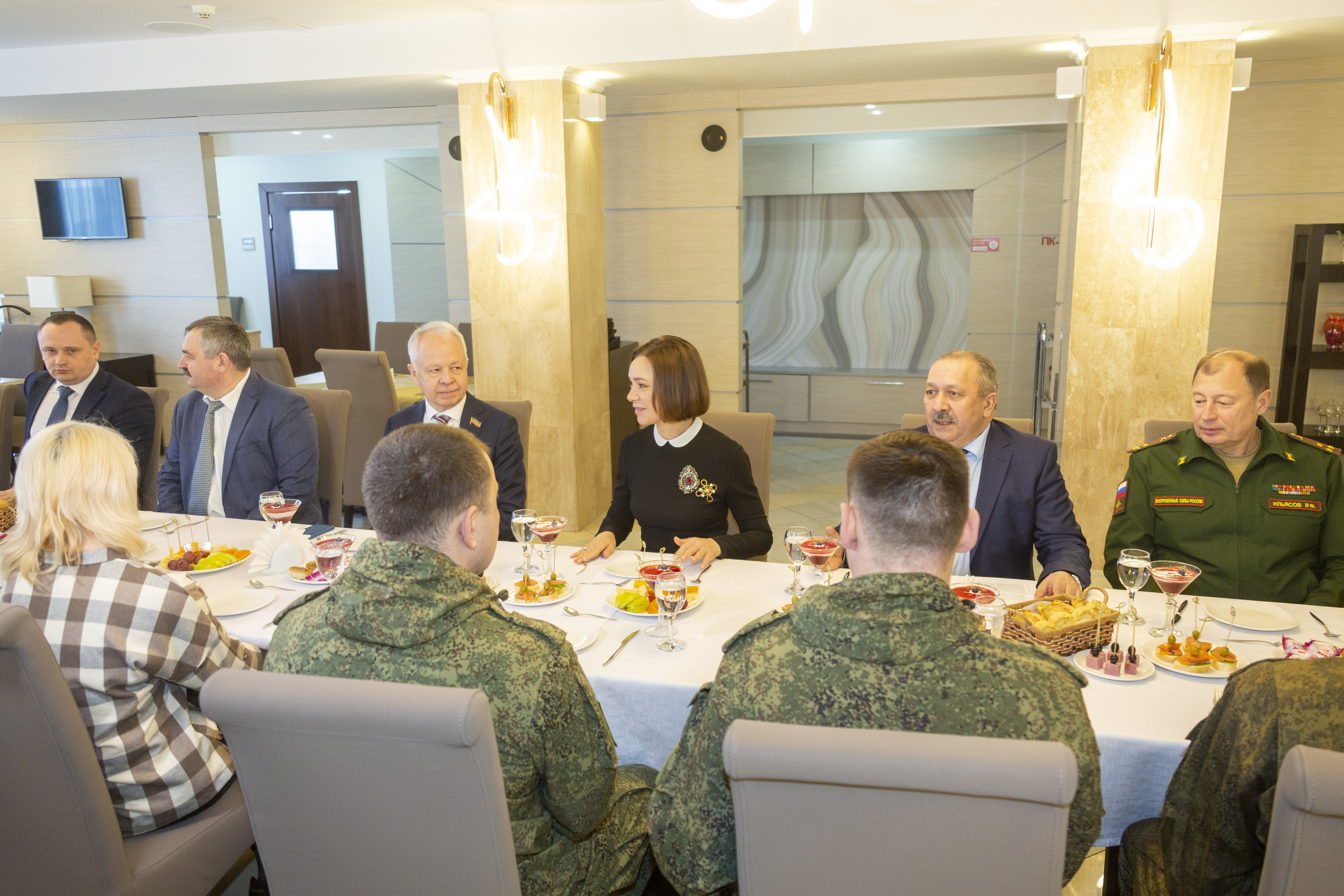 На встрече присутствовали заместитель генерального директора ПАО «КАМАЗ» по безопасности Сирень Галиакберов, председатель профсоюзного комитета компании Ильдар Шамилов, советник генерального директора «КАМАЗа» Александр Евграфов, а также депутат Государственной Думы РФ Альфия Когогина и военный комиссар Центрального и Автозаводского районов г. Набережные Челны Рашид Ильясов, другие руководители.