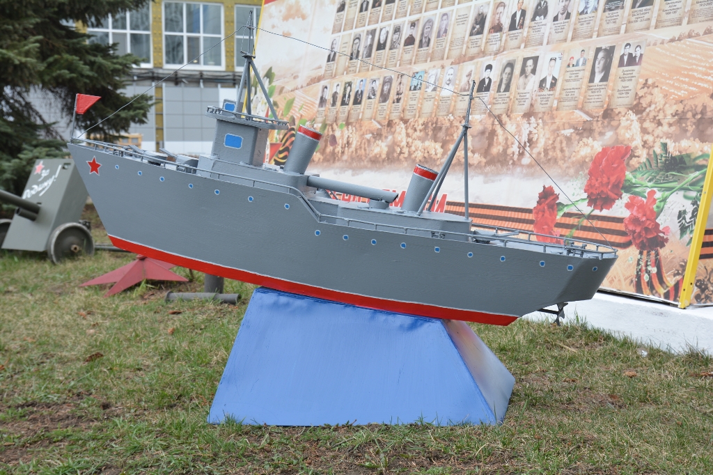 Заводская стена памяти на «НЕФАЗе», открытая к 75-летию Победы в Великой Отечественной войне, в этом году пополнилась ещё одним экспонатом – макетом корабля.