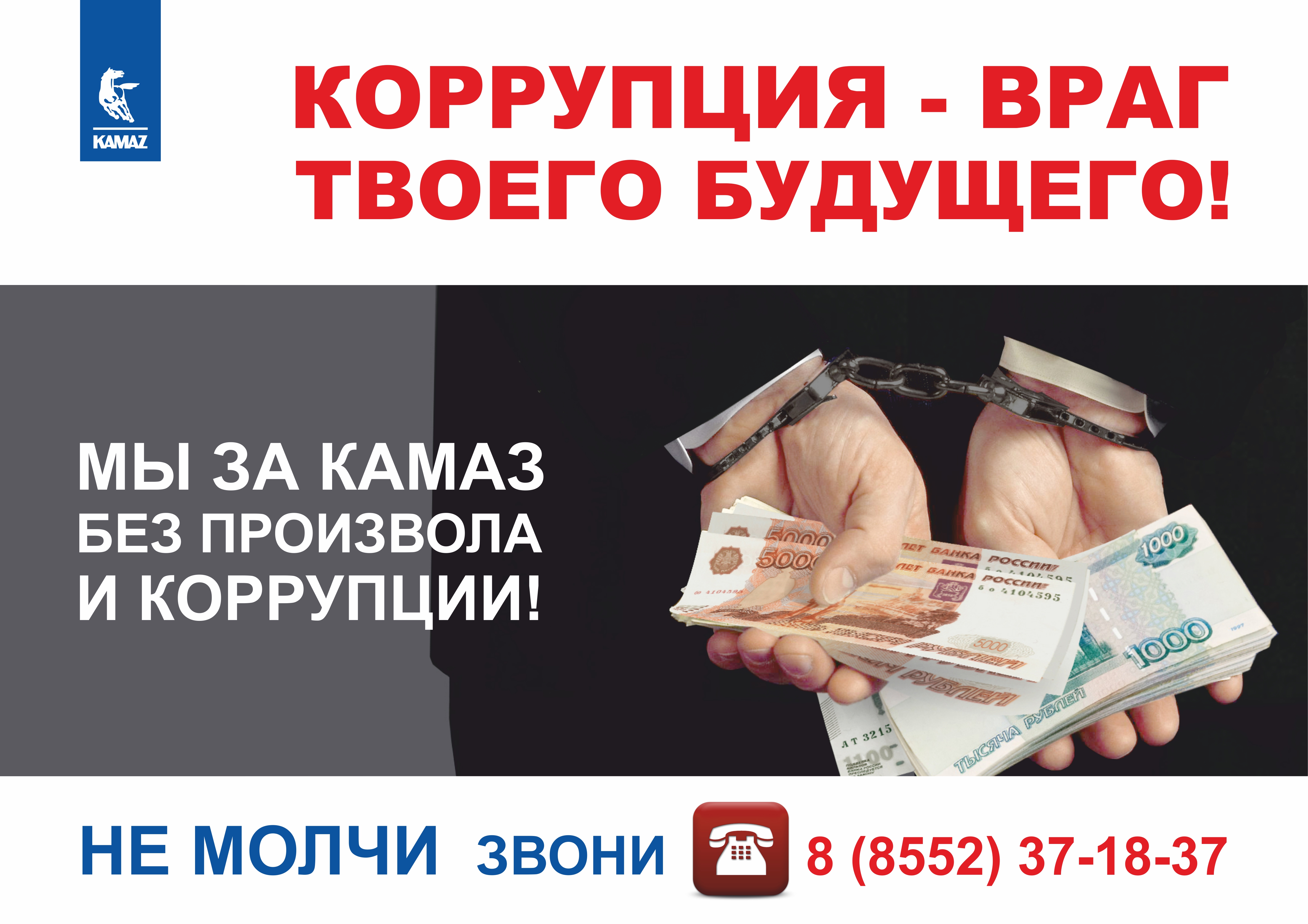 На «КАМАЗе» объявлен конкурс антикоррупционных слоганов «Словом по коррупции» среди сотрудников подразделений и организаций компании.